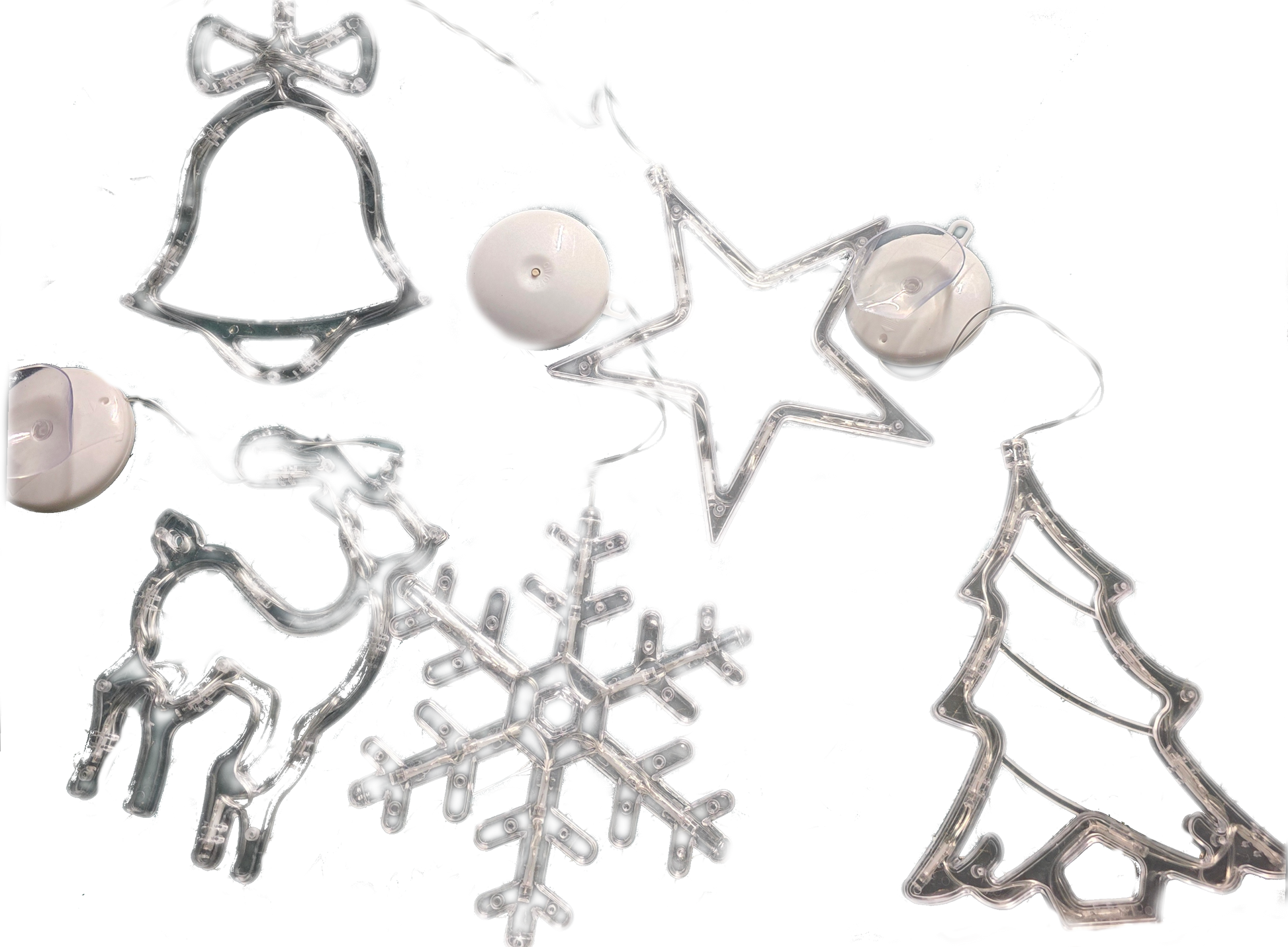 5 pc Christmas light set , suction cups are included however the batteries are not, they are clear and each one is about - 5-6 in wide and 5-6 in tall