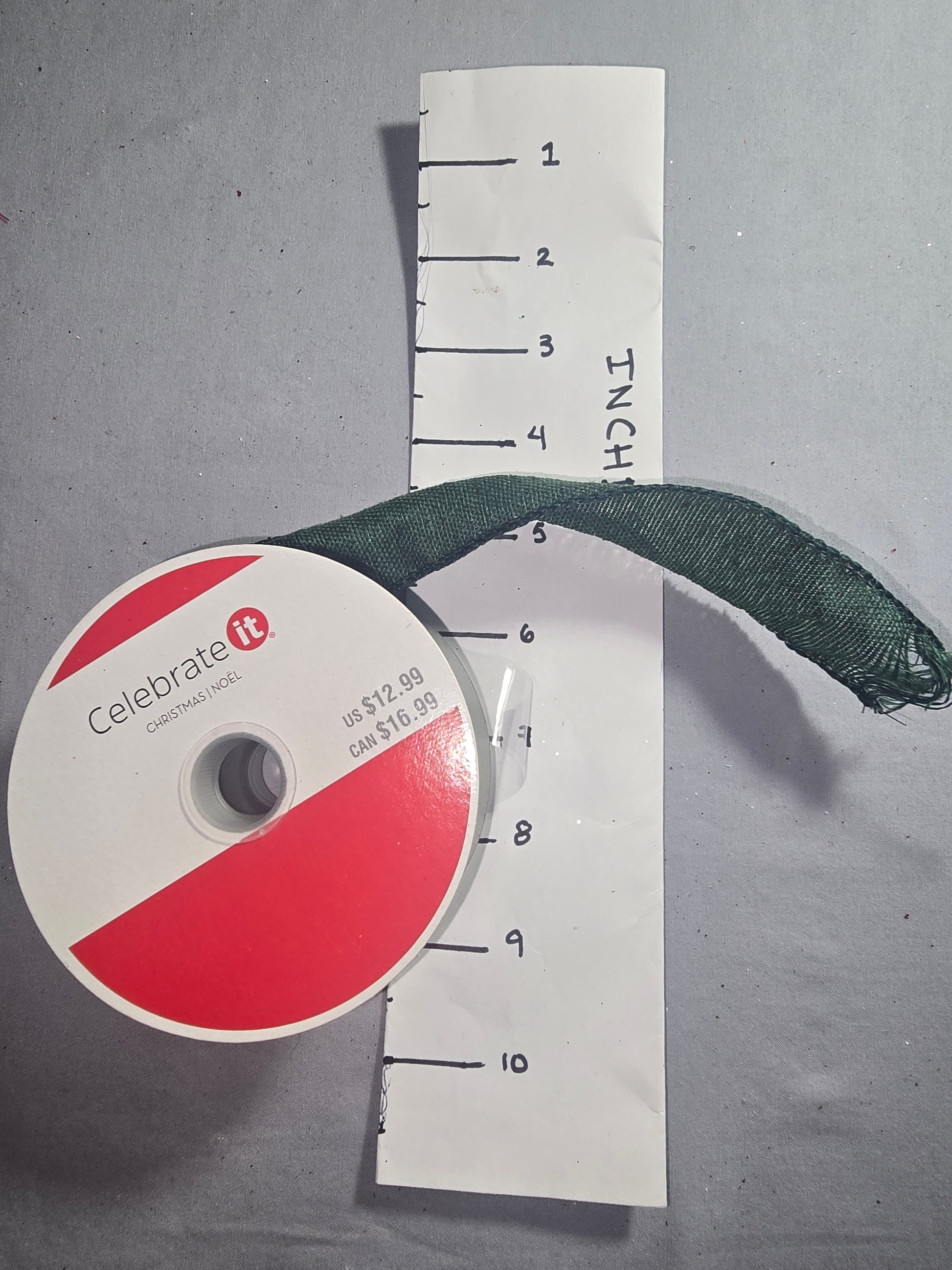 1 1/2 in X 30 ft - Green linen wired ribbon