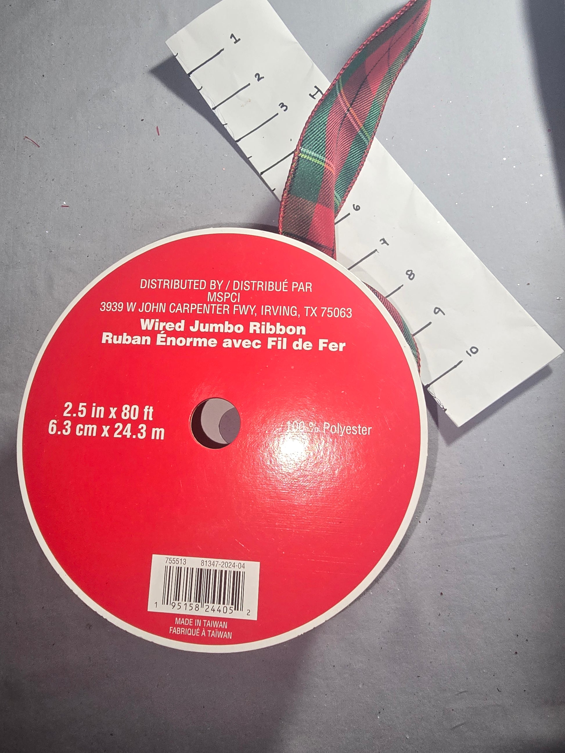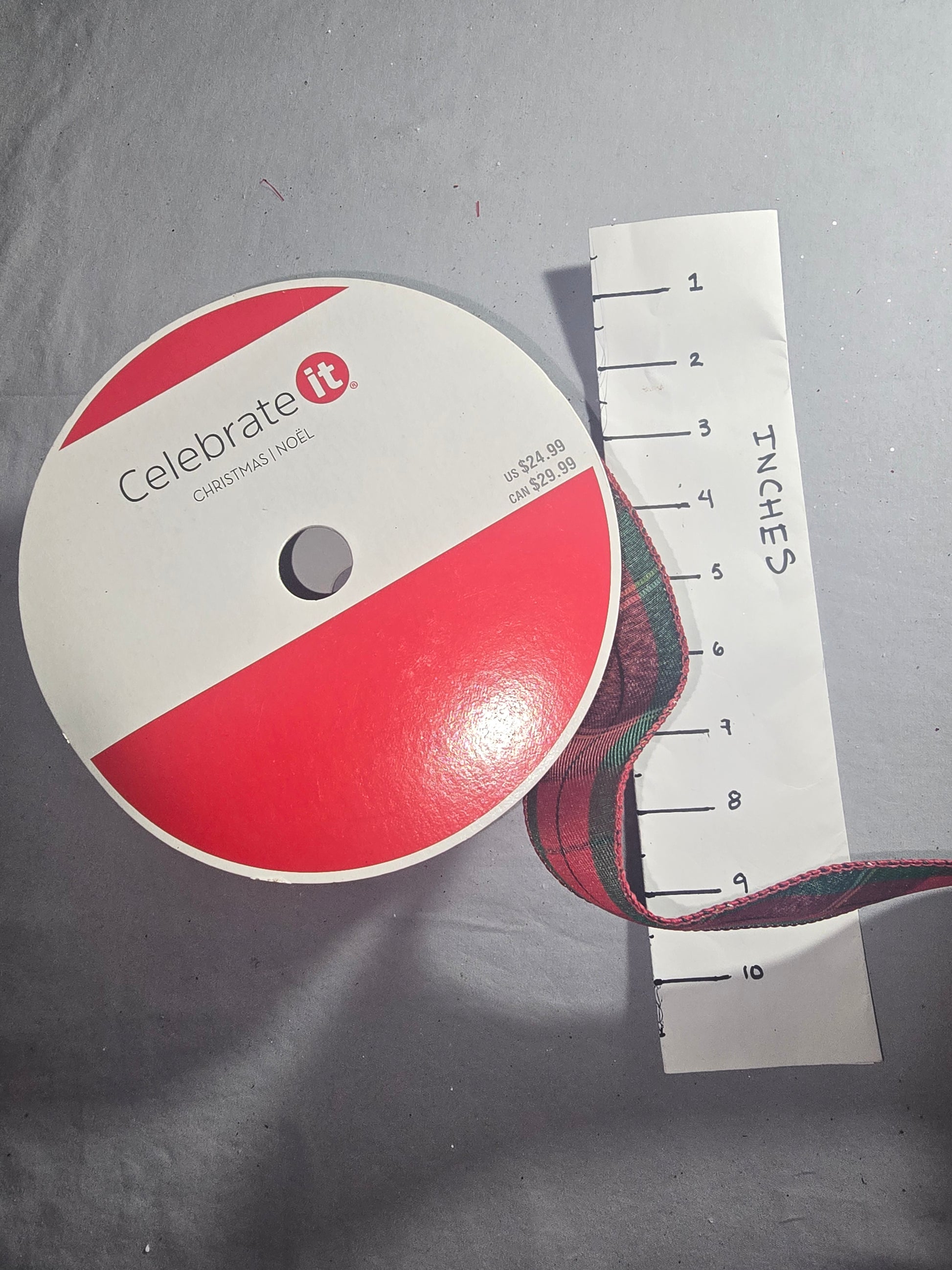 2.5 in X 80 ft - Green and red plaid wired ribbon