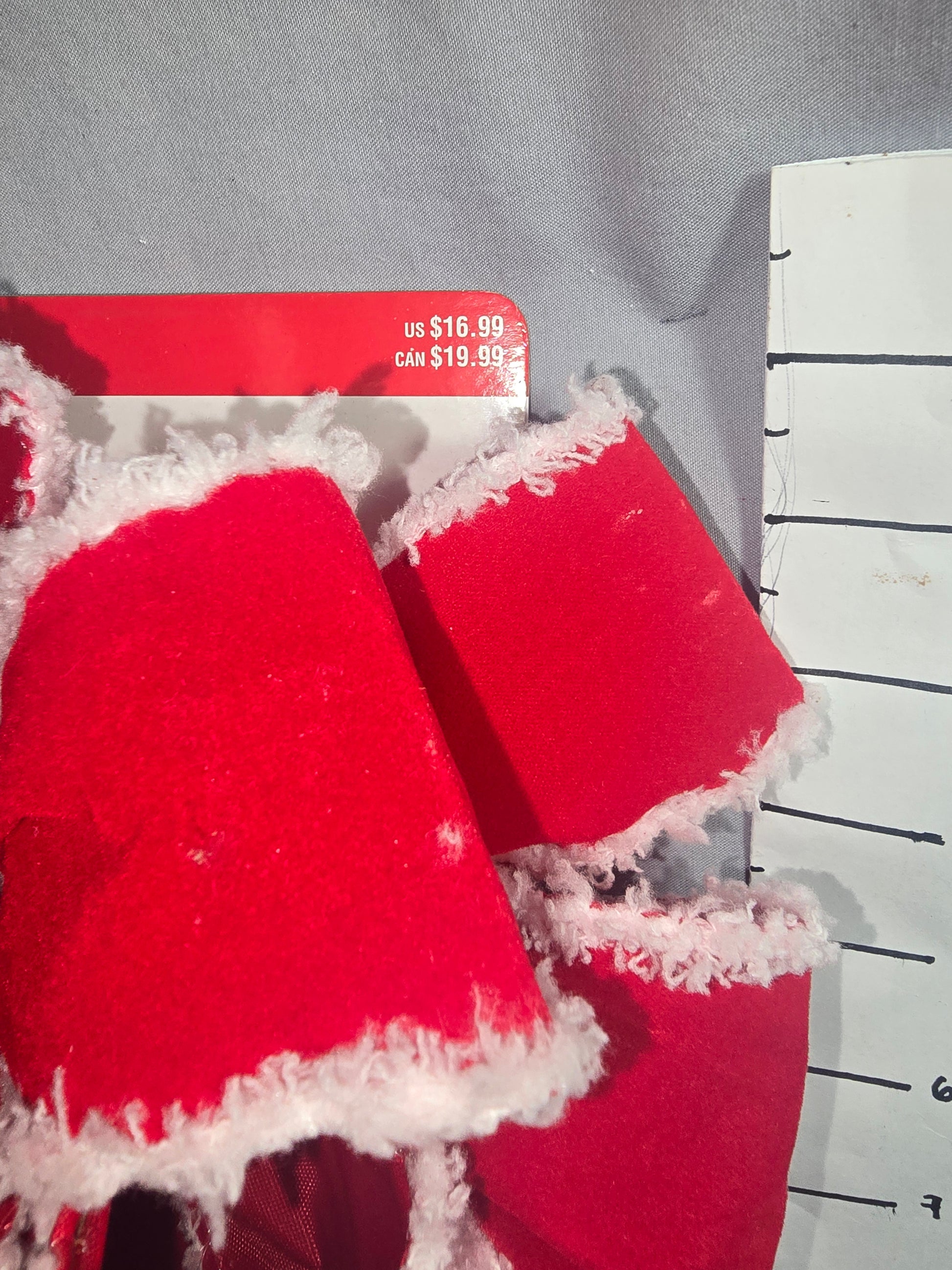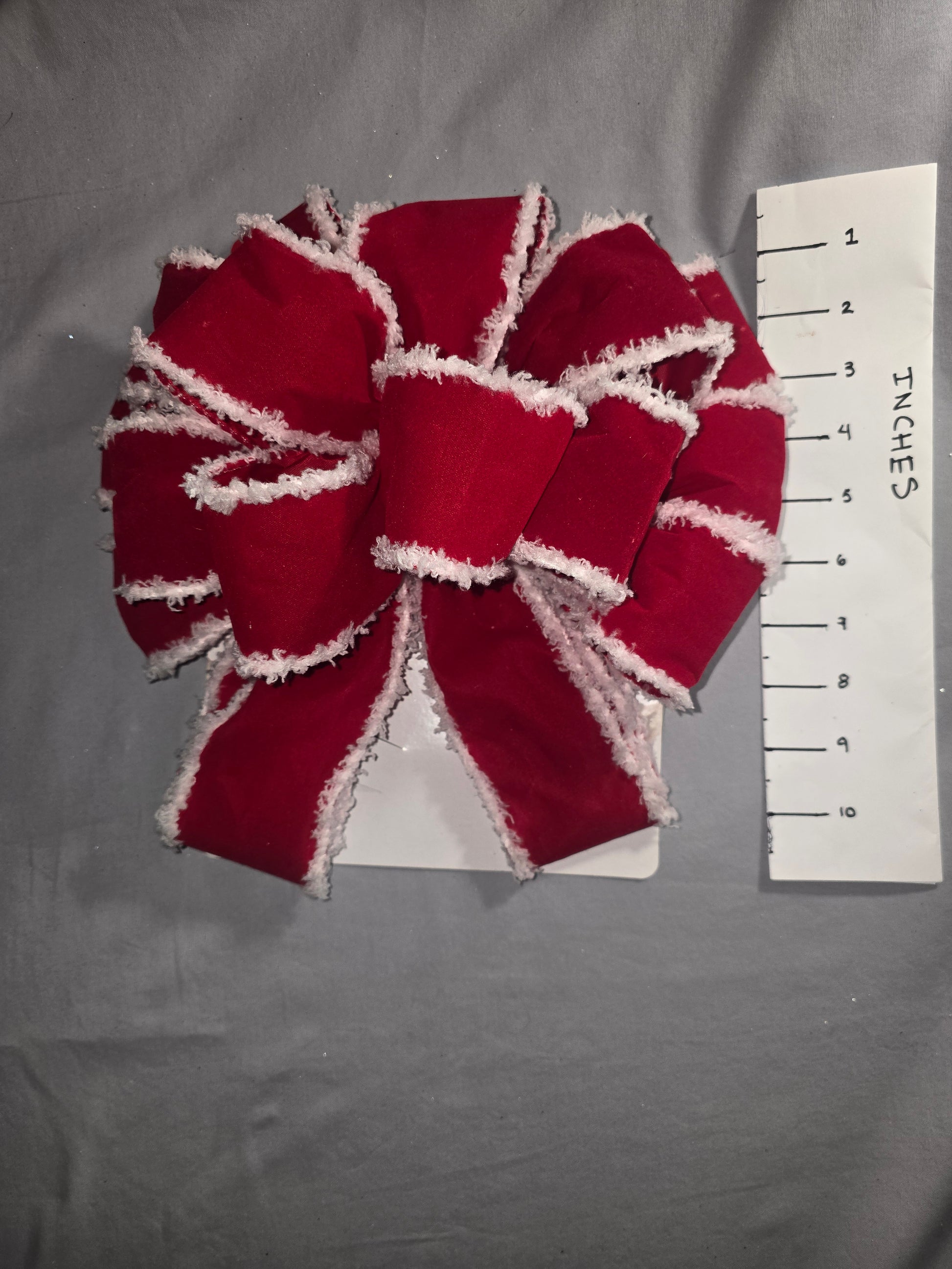 12 inch traditional red velvet with white fur trim pre-made bow.