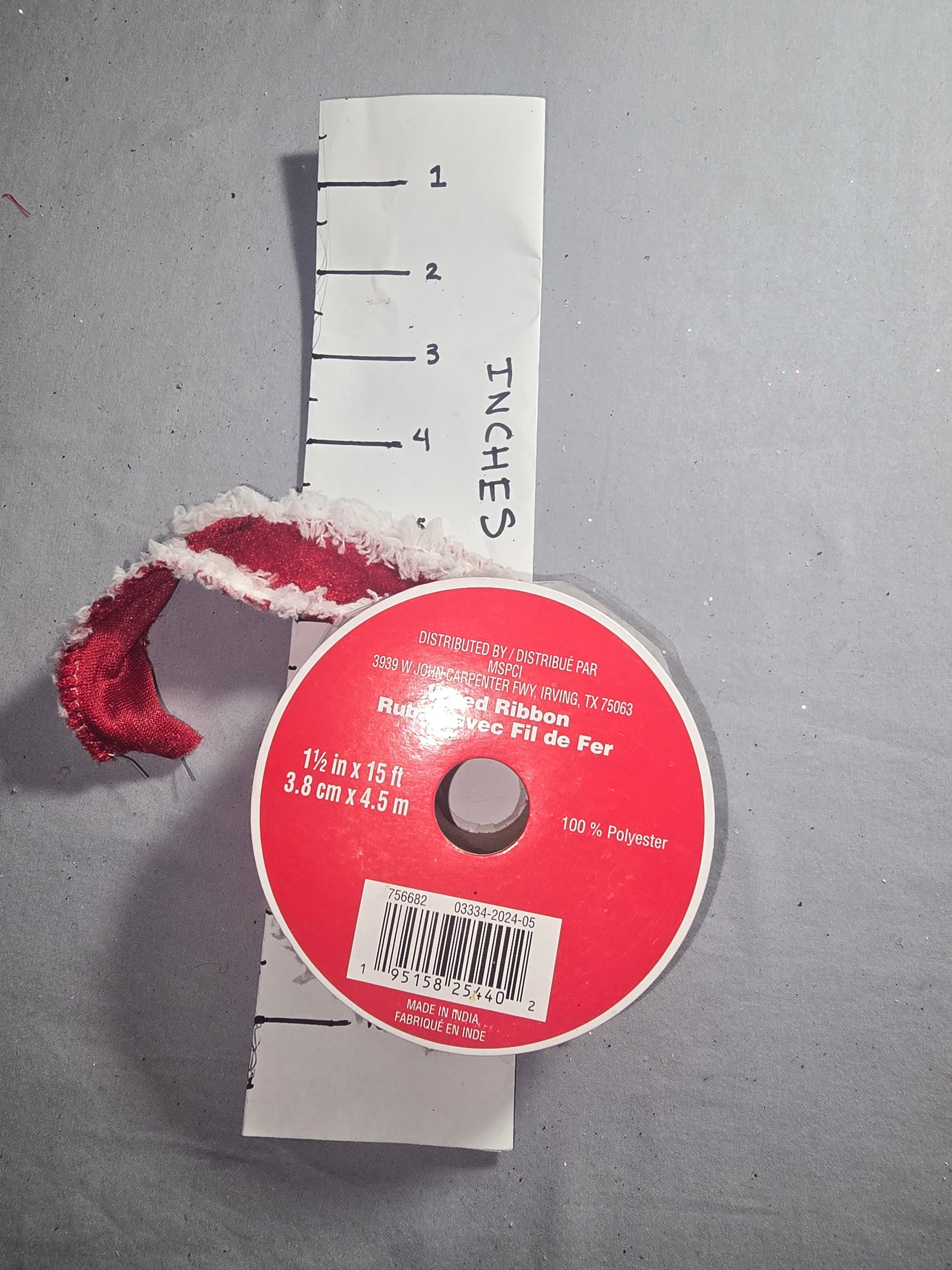 1 1/2 in X 15 ft - Red velvet with a white fir edge wired ribbon