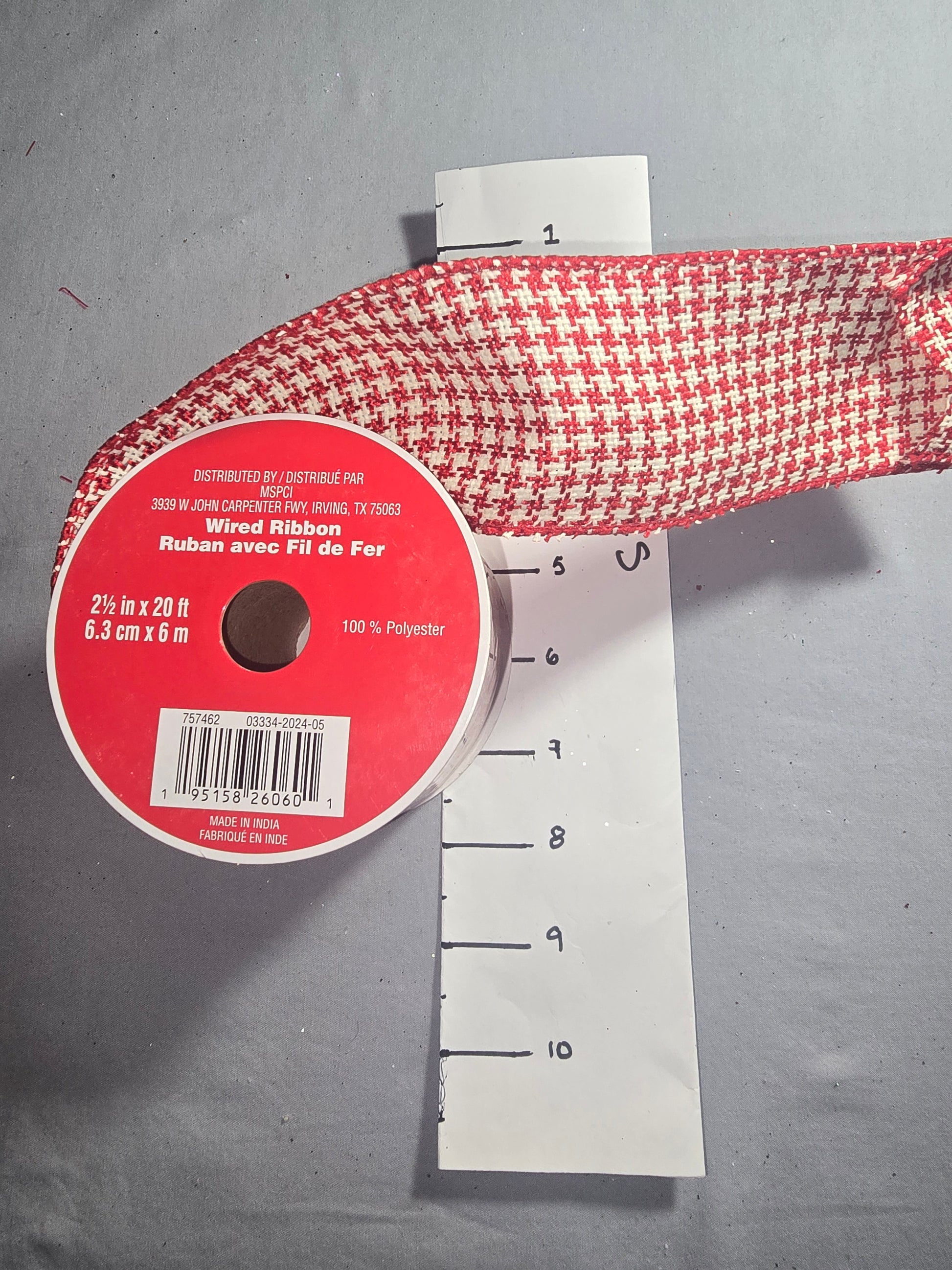 2 1/2 in X 20 ft - Red & white wired ribbon