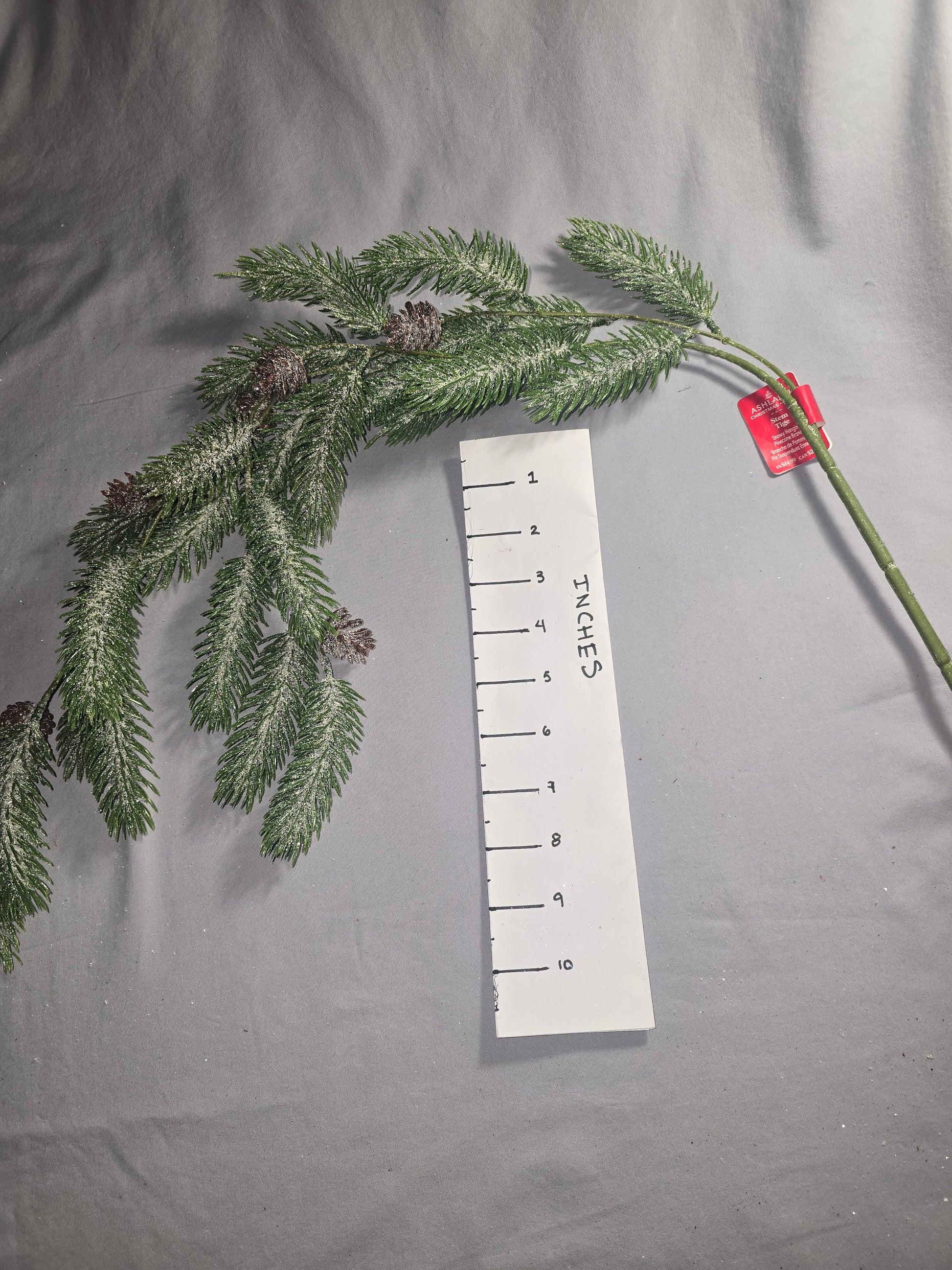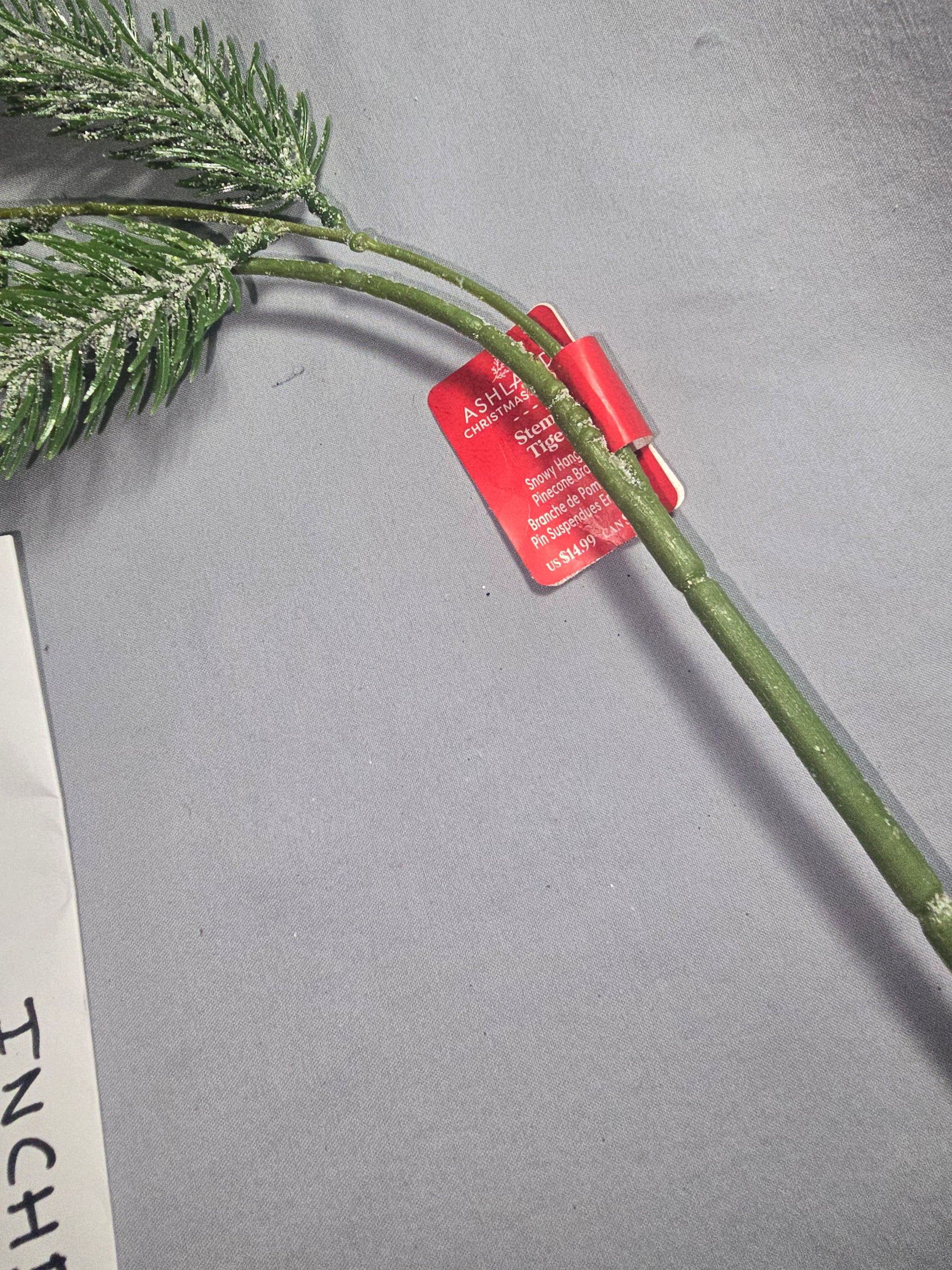 2 1/2 ft lightly flocked hanging pine branch with mini pinecones